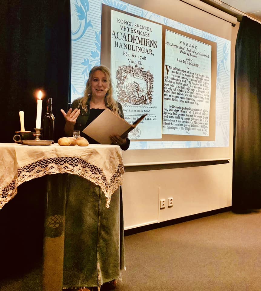 Grevinnan och spriten – ett musikföredrag i ton, ord och bilder om Eva Ekeblad de la Gardie framförs av Hanna Sundblad.